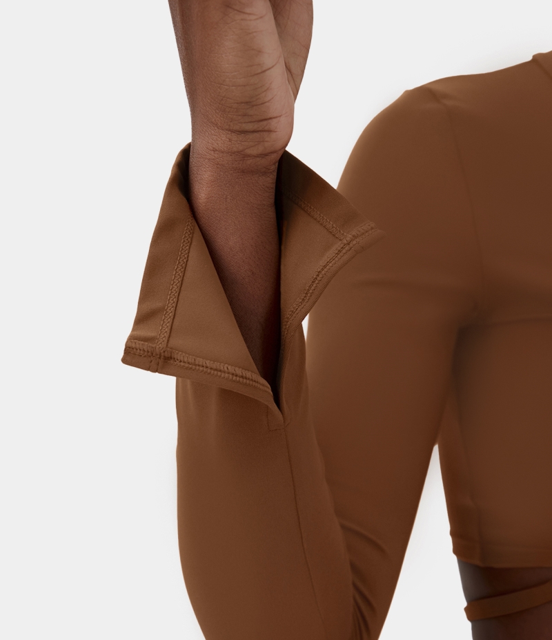 Halara V Neck Ruched Crisscross Lace Up Cropped Yoga Sports Women's Tops Brown | AOJCKNF-94
