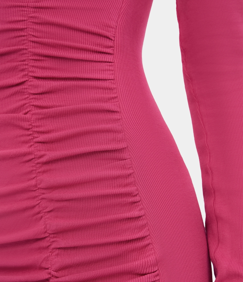 Halara V Neck Ruched Crossover Hem Bodycon Mini Casual Women's Dress Party Punch | 964285-DXY