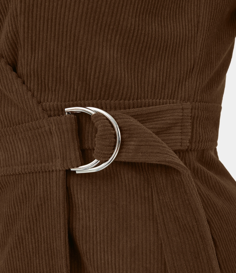 :: Halara V Neck Sleeveless Backless Belted Corduroy Mini Casual Women's Dress Potting Soil | 251876-TCI