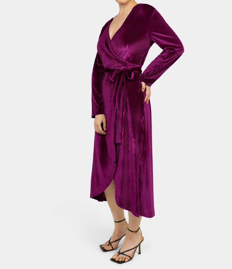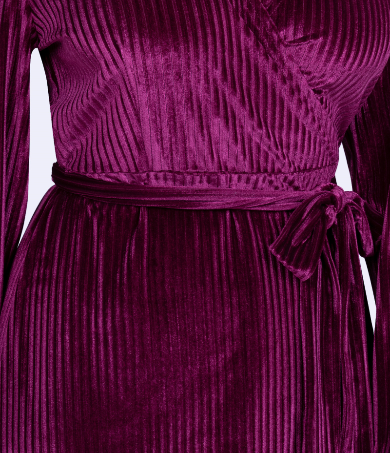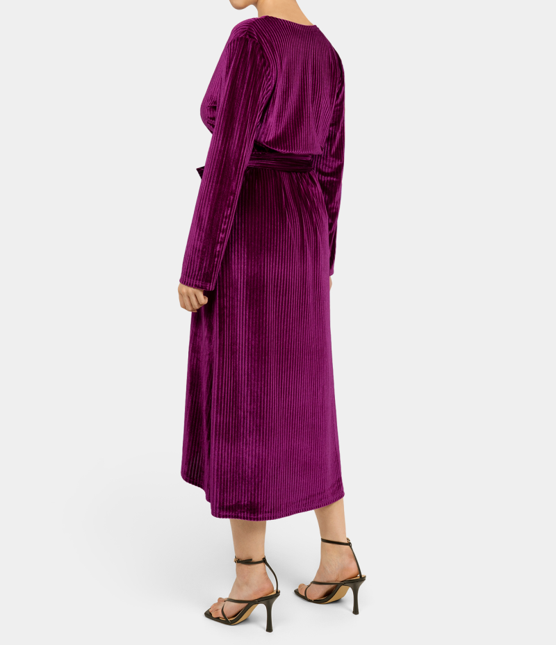 :: Halara V Neck Wrapped Belted Lace Up Velvet Midi Casual Women's Dress Raspberry Radiance | 908432-HJS