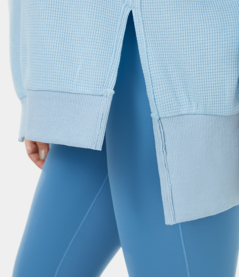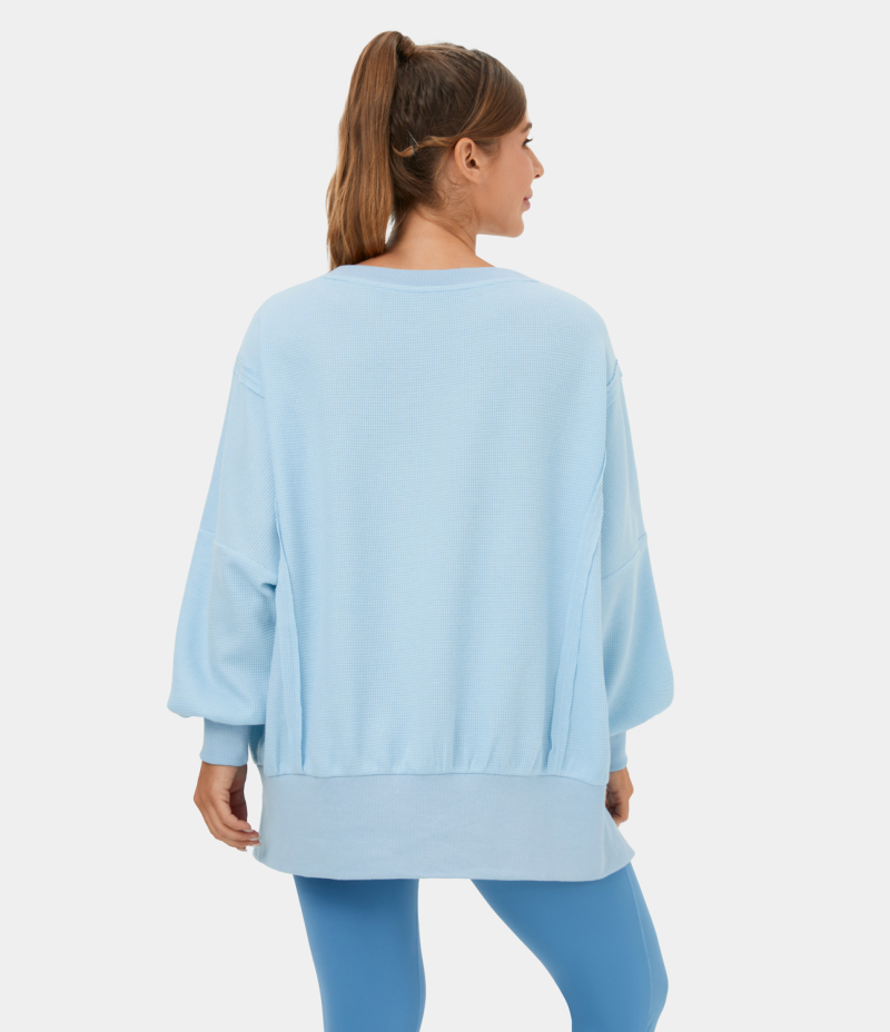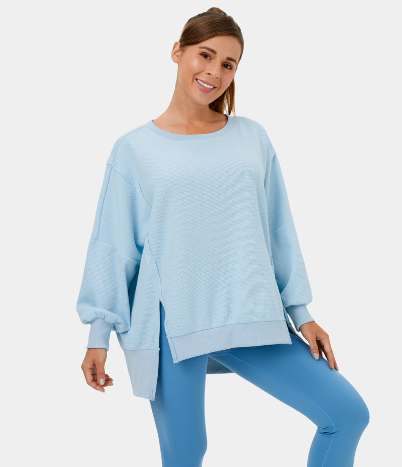 :: Halara Waffle Batwing Sleeve Split High Low Oversize Casual Sweatshirt Women's Tops Delicate Blue | LSFUBAG-87