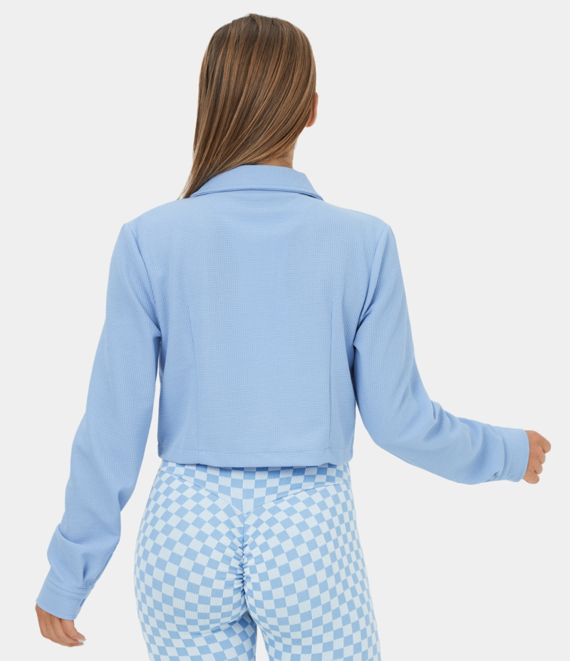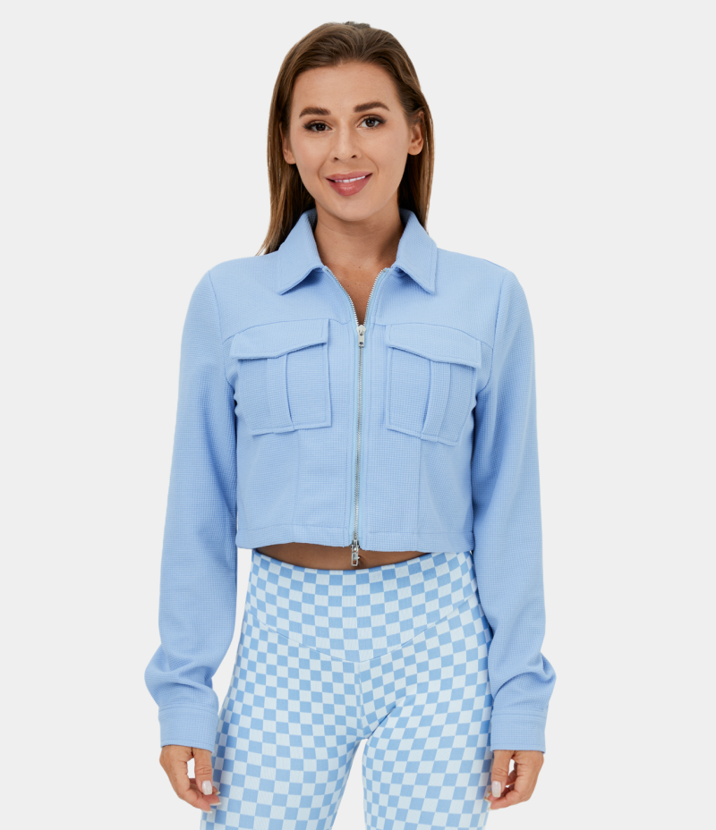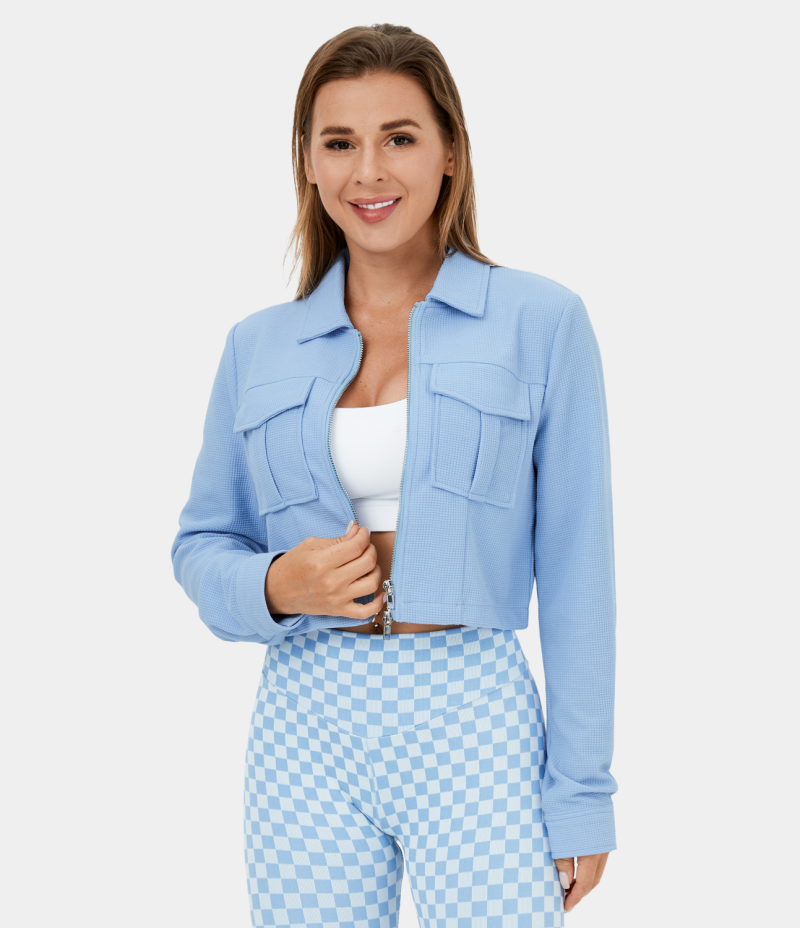 Halara Waffle Collared 2-Way Zipper Pocket Cropped Casual Cargo Jacket Women's Tops Dutch Canal | SJYVRWG-18