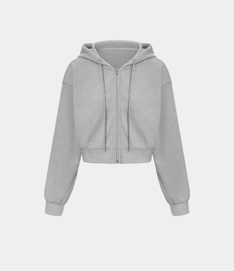:: Halara Waffle Hooded Drawstring Zipper Cropped Casual Sports Sweatshirt Women's Tops Antarctica | MFPDBCU-69