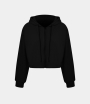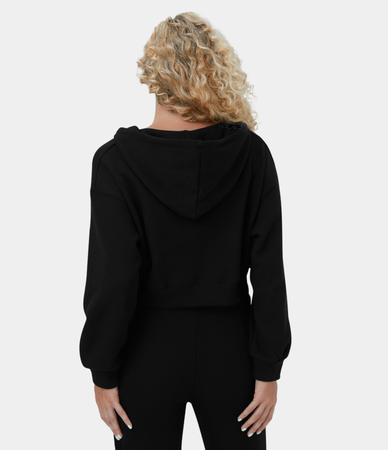 :: Halara Waffle Hooded Drawstring Zipper Cropped Casual Sports Sweatshirt Women's Tops Black | YATLBXV-24