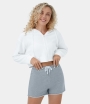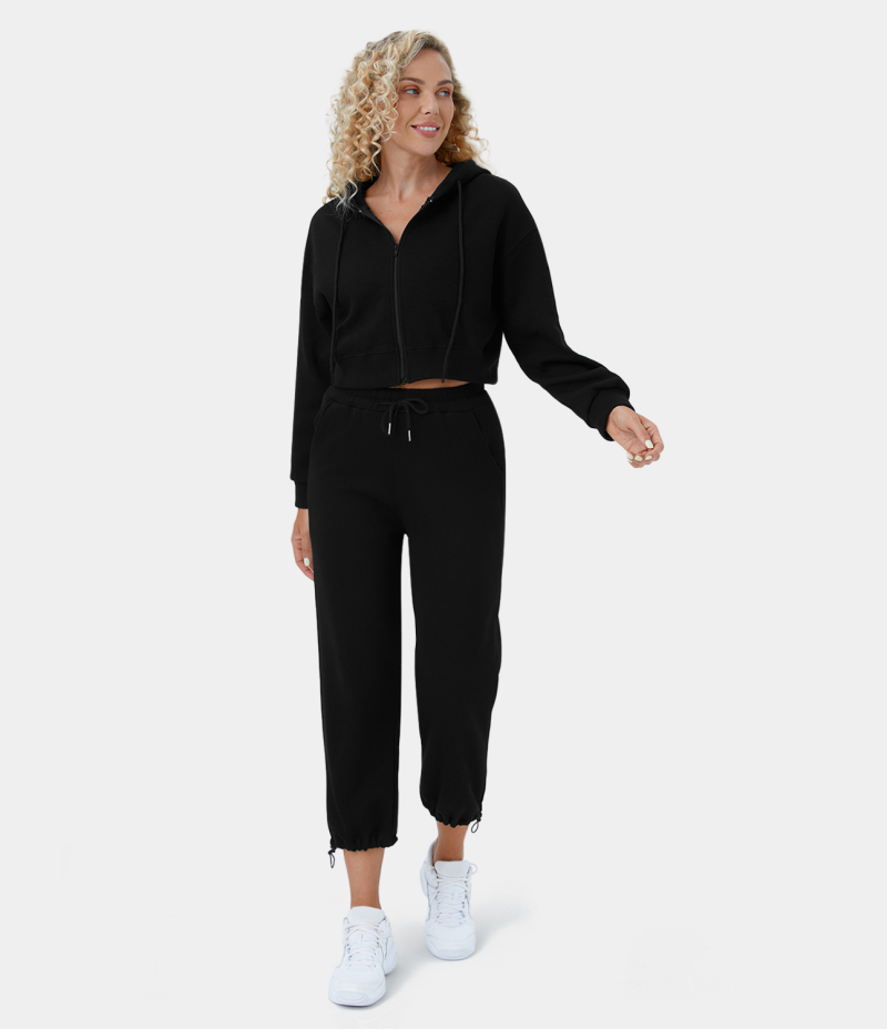 Halara Waffle Hooded Drawstring Zipper Cropped Casual Sports Sweatshirt Women's Tops Black | YATLBXV-24