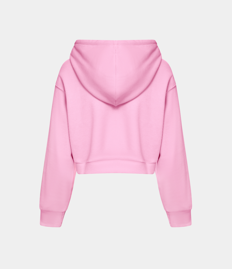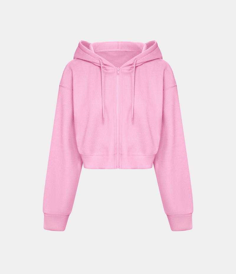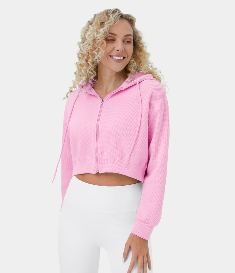 :: Halara Waffle Hooded Drawstring Zipper Cropped Casual Sports Sweatshirt Women's Tops Cherry Blossom | KPYOQLE-74