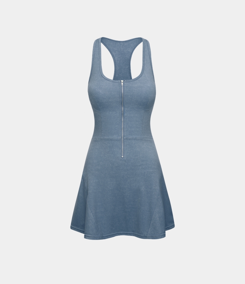 Halara Zip Front Racerback 2-in-1 Stretchy Denim Print Tennis Women's Dress Denim Dark Blue | 506947-OJF